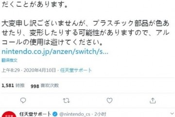 最近跟着疫情的继续,我们现已习惯用酒精、消毒水等去整理自己的物品。但近来任天堂提示我们不要对Switch这么做……任天堂服务中