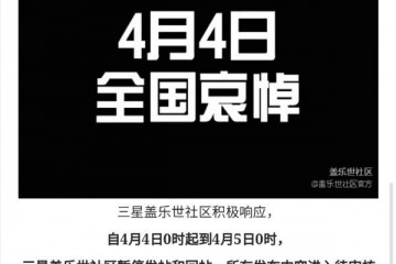 IT之家4月4日音讯 据IT之家网友反应,为呼应国务院发布的2020年4月4日全国性吊唁活动,三星盖乐世社区自4月4日0时起到4月5日0时