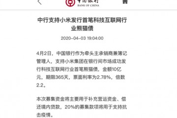 新浪财经讯 4月3日晚间音讯,4月2日,中国银行作为牵头主承销商兼簿记管理人,支撑小米集团在银行间商场成功发行科技互联网