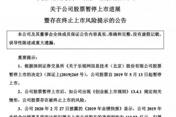 4月2日音讯,乐视网今天发布关于公司股票暂停上市发展暨存在停止上市危险提示的布告,布告显现,公司2019年未经会计师事务所审计