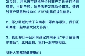 饿了么按商场指导价对口罩商户定价继续筛查干涉