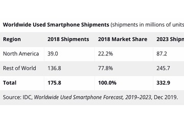 新浪科技讯 北京时间1月19日上午音讯,据外媒报导,IDC的《2019-2023年全球二手智能手机猜测》陈述数据显现,全球二手智能手
