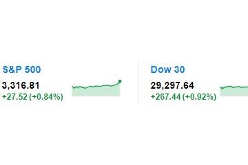 1月17日音讯,据国外新闻媒体报道,受科技股、微弱的零售出售数据等驱动,美国三大股指周四全线上涨,标普500指数初次打破3300点