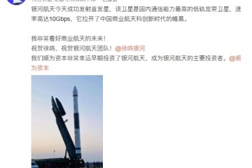 银河航天发射首发星成功雷军顺为很走运前期投了资