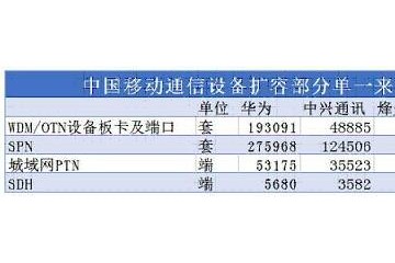 日前,据中国移动布告称,在OTN/WDM设备部分,中国移意向华为、中兴通讯、上海诺基亚贝尔、烽烟通讯(600498)别离收购193091套