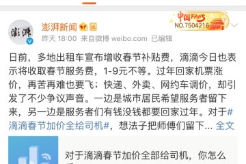 原标题:滴滴新年加价全给司机上热搜,9成网友表明承受或了解 滴滴将在1月21日-2月3日期间加收“新年司机服务费”给到司