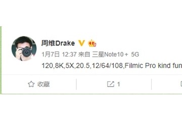 三星GalaxyS20Ultra参数曝光120Hz刷新率屏幕+1亿像素摄像头