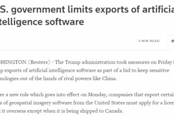 (原标题:美国新规约束人工智能软件出口,针对我国,下周一收效)据路透社等海外新闻媒体报导,针对我国等国家,特朗普政府在周
