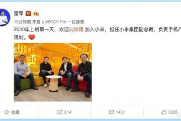 今天是 2020 年的第一个工作日,新年伊始小米就有严重的人事录用。小米掌门人雷军刚刚发布微博宣告,常程正式参加小米,将担任小