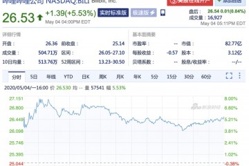 北京时间5月5日音讯,周一收盘,哔哩哔哩(B站)股价大涨5.53%,报收26.53美元,市值达82.77亿美元。5月3日晚间,B站推出了视频