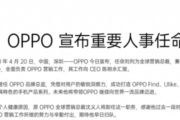 OPPO宣告刘列担任全球营销总裁沈义人卸职