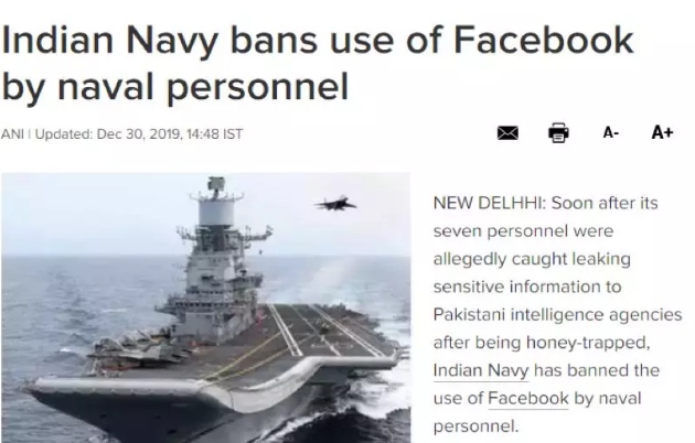 依据印度新闻网站“The Print”的报导,这11名水兵战士中最早被抓的7人,是2017年才入伍的,但他们很快就被巴基斯坦的情报人员在交际网络上“假装”的“美人”账号所盯上了。《印度时报》也介绍说,这些虚伪的美人账号与战士们的谈天内容多以“性”为主,以此成为了这些战士的交际“老友”,从而从战士那里要到了比如戎行的布置状况等军事隐秘情报。