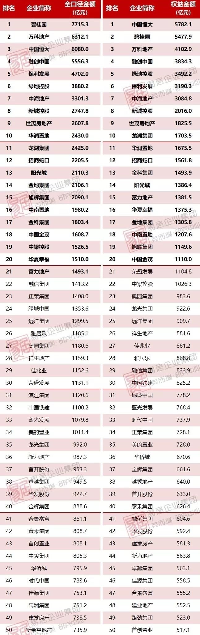 上个月权益金额被融创反超的万科,在最终一个月创下了657亿的权益金额,重回第三;不仅如此,在全口径金额上,万科还反超了恒大,排在第二名。绿洲在2019年最终一个月创下864.7亿的全口径金额,反超中海,行进一名,排在第六位。