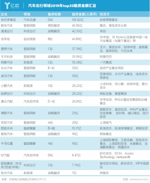 轿车出行范畴2019年度发表融资金额的top20企业中,车很多集团凭仗由软银愿景基金(SoftBank Vision Fund)出资的15亿美元(约合人民币105.82亿元)D轮融资,荣登轿车职业2019年度融资金额第一。至此,车很多合计已完结超30亿美元融资,投后估值超90亿美元。
