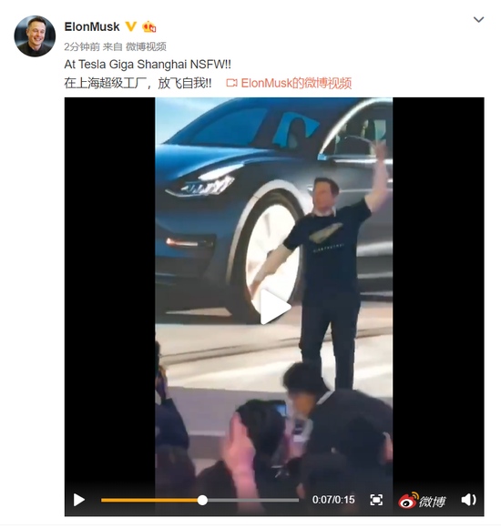 新浪科技讯 1月7日晚间音讯,特斯拉举办我国制作Model 3交给典礼,马斯克现场跳起舞蹈。交给典礼完毕后,他在微博上发布了一条视频,称“在上海超级工厂,放飞自我!”