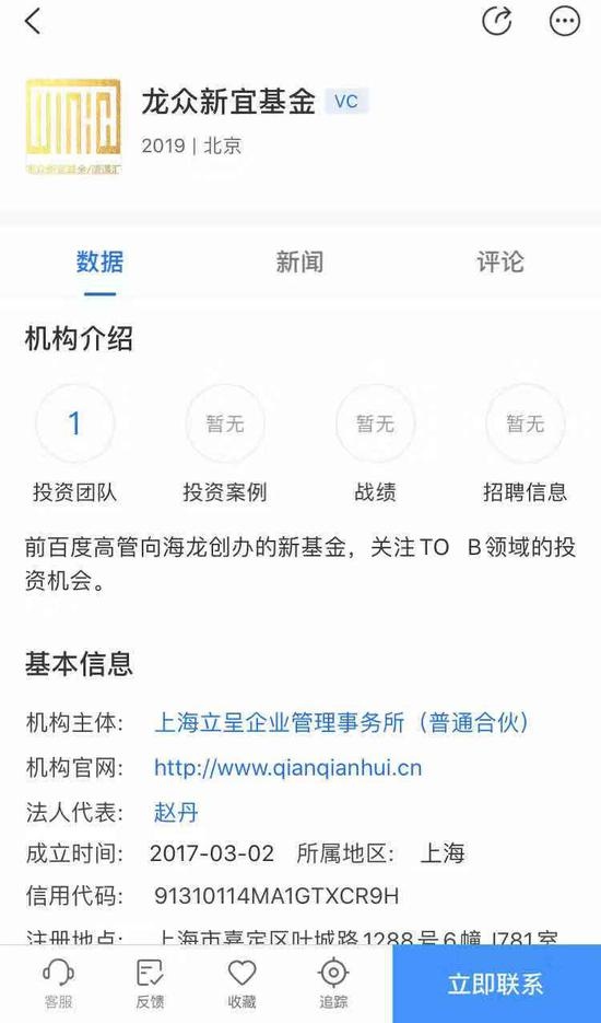 图为企手刺上龙众新宜基金相关信息向海龙于2019年5月17日宣告从百度离任,离任上一任百度高档副总裁、百度查找公司总裁、SSG总司理。2001年,向海龙曾创立上海企浪网络科技有限公司,该公司后来成为百度竞价排名上海区域总署理,是百度途径体系中最有实力的署理商,2005年2月被百度收买,向海龙由此参加百度。