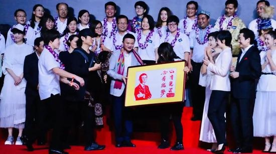 村庄教师颁奖前,明星领队带着这些获奖村庄教师和村庄校长走了红毯,这是每年的必备项目。这边企业家给戴上花环,那儿马云携李连杰、孙俪、吕思清、高晓松、宋小宝、胡彦斌、声入人心男团等人等候教师们过来合影。