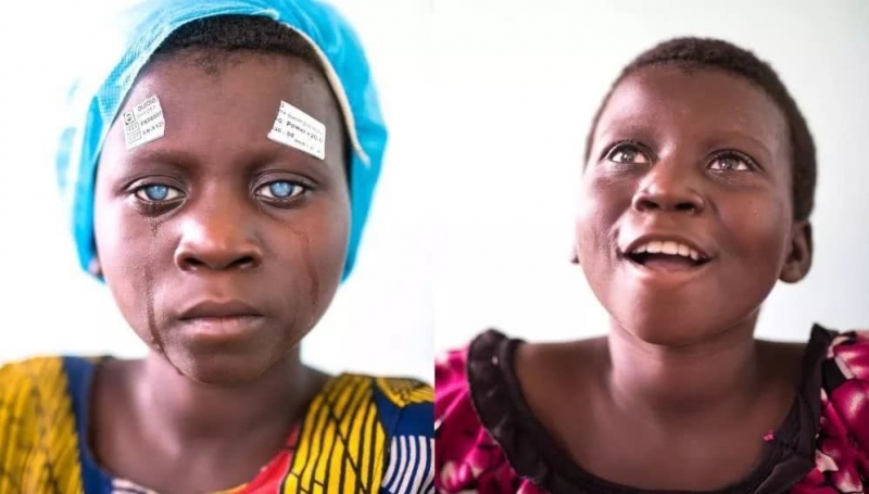 这位7岁的女孩因为白内障失明晰3年,在接受手术医治后复明晰 | IAPB / Andras D. Hajdu