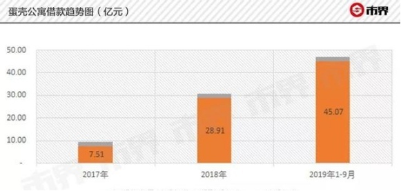 蛋壳公寓招股书显示,截至2017年末、2018年末和2019年9月末,蛋壳公寓从金融机构获得的预收款分别为9.37亿元、21.27亿元和31.57亿元,从居民手中获得的预收款则分别为2.06亿元、2.8亿元和7.94亿元。
