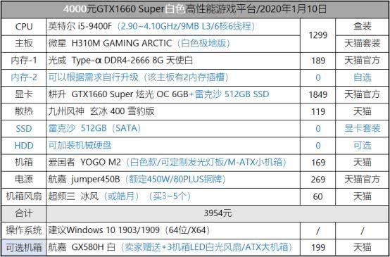 独立显卡这边,中低端显卡纯白的很难找,用耕升的GTX1660 Super炫光进行代替。主张挑选卖家推出的SSD搭售套装,额定调配雷克沙(存储类大品牌)512GB固态的价格也就贵了250元。