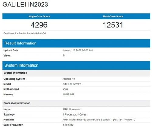 据媒体晒出的GeekBench 4跑分网站多个方面数据显现,这款型号为GALILEI IN2023的设备将搭载骁龙865旗舰芯片,装备12GB LPDDR5内存,运转依据Android10的操作系统,其单核得分4296,多核得分12531,全体功能契合此前有关最新的高通骁龙865移动渠道的爆料,当然,现在的数据很可能还仅仅工程机数据,信任后期正式版别还能有某些特定的程度的提高。
