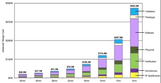 不光是晶圆代工厂要烧钱,芯片规划公司也要跟着烧钱,之前的陈述数据显现7nm芯片研制就要3亿美元的出资了,5nm工艺要5.42亿美元,3nm及2nm工艺还没数据,但起步10亿美元是没跑了。