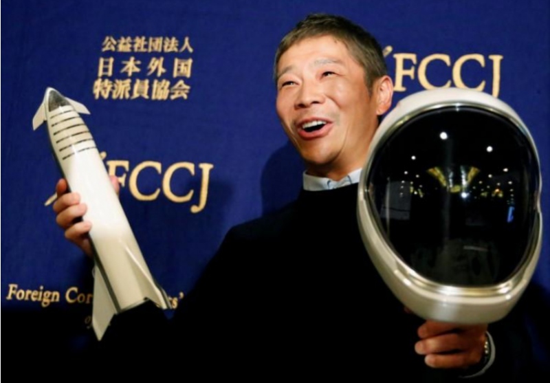 图:日本亿万富翁前泽友作,他被美国太空探究技能公司SpaceX选为首位私家绕月太空游览的乘客