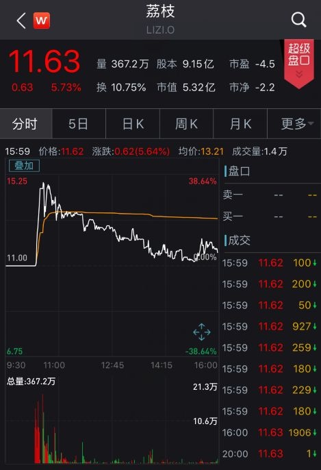 上市首日,荔枝盘中一度上涨近40%。截至收盘报11.63美元/股,上涨5.73%,总市值5.32亿美元。