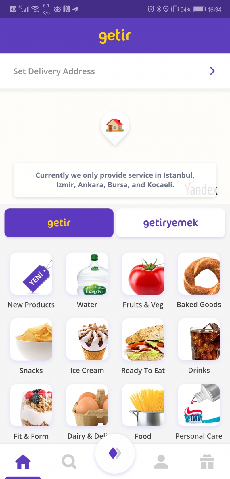 Getir 界面 来历:APP 截图