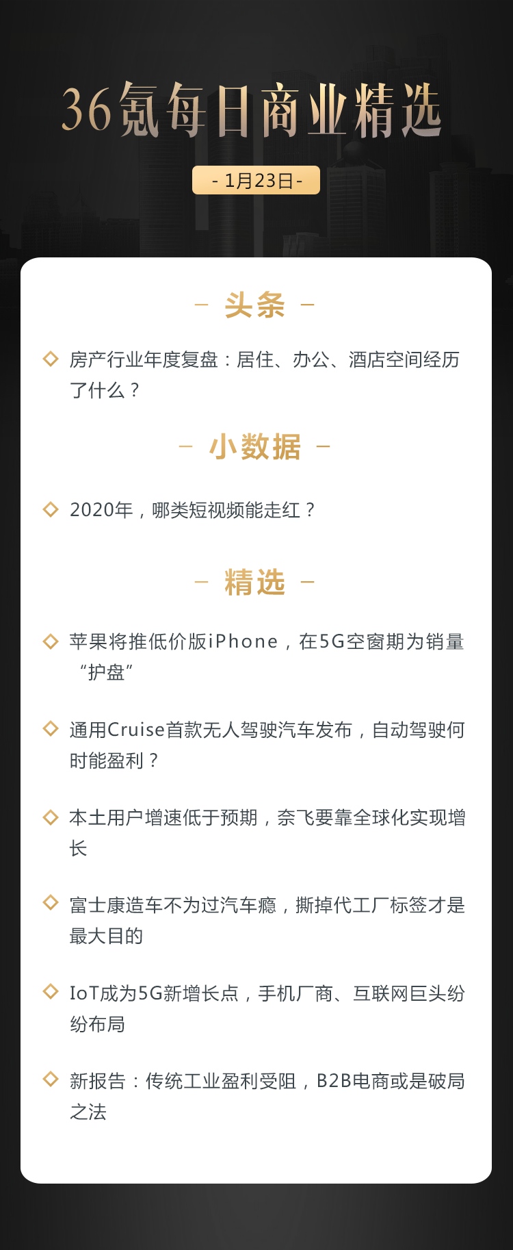本文来自36氪付费栏目《36氪每日商业精选》——1月23日