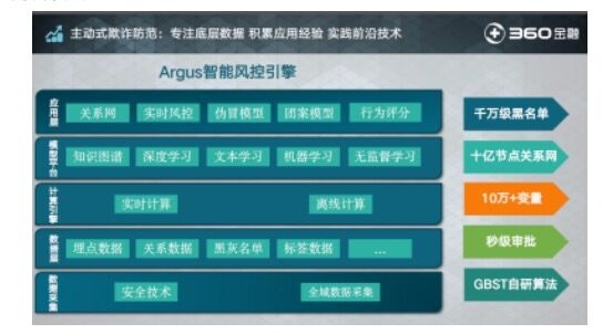 针对自动式诈骗,360金融发挥数据资源积累及技能的使用优势,具有GBST自研算法,依托千万等级的黑名单和数亿的白名单库、包括超越11亿联系节点和140多亿的联系边的联系网络数据,以及丰厚的安全大数据,如百万等级的催收电话库和数十万等级的赌博网站名单,使反诈骗数据愈加丰厚全面,完成10万+变量AI核算与秒级审阅。针对被动式诈骗,则从事前提示、事中预警和事后防控建立起全流程的防备系统。