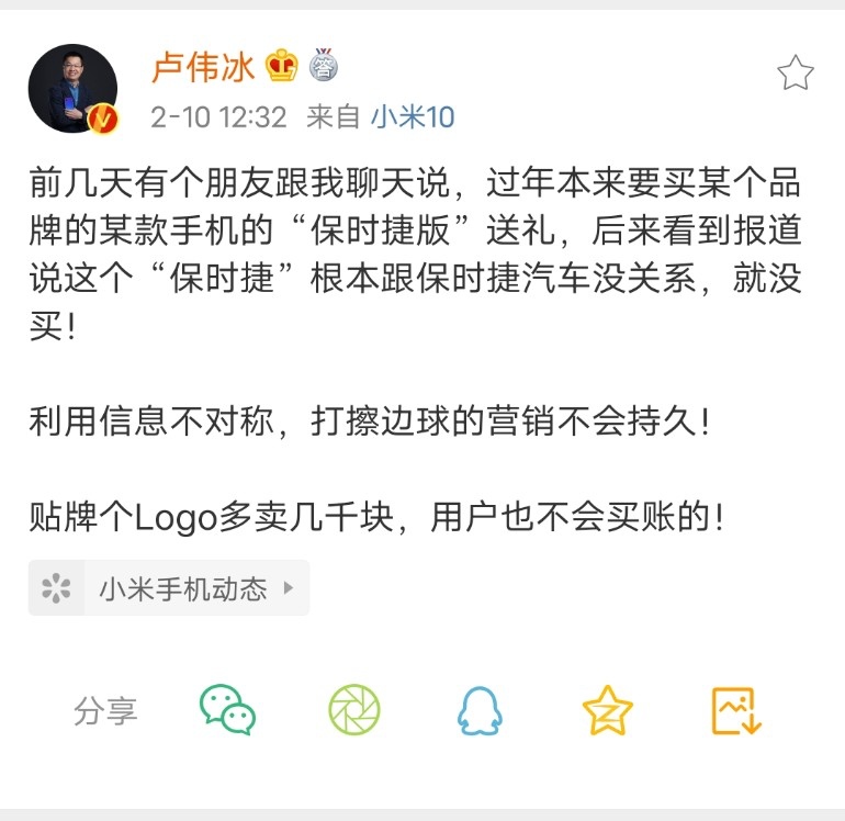 华为的P系列或许Mate系列由所以高端定位,搞联名也很正常,比方和保时捷推出的华为Mate RS定制版手机,价格都要一万左右。最有意思的是,也不知道是不是卢伟冰的效果,之前卢伟冰打击华为手机的定制版是使用信息不对称打擦边球的营销,贴个Logo多卖几千块,用户不会配合。