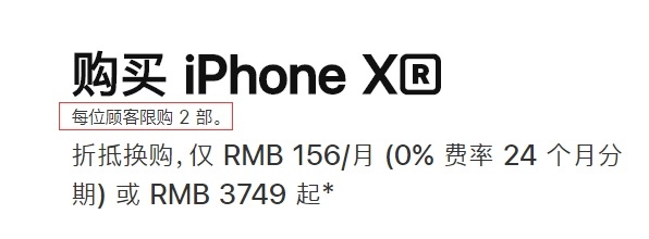 IT之家3月19日音讯 据IT之家网友投稿苹果官网敞开限购,每人仅限购买两部iPhone。IT之家检查苹果官网发现,包含iPhone 11 Pro、iPhone 11 Pro Max、iPhone11、iPhoneXR在内的机型都每人限购2部,别的AirPods Pro也每人限购两部。