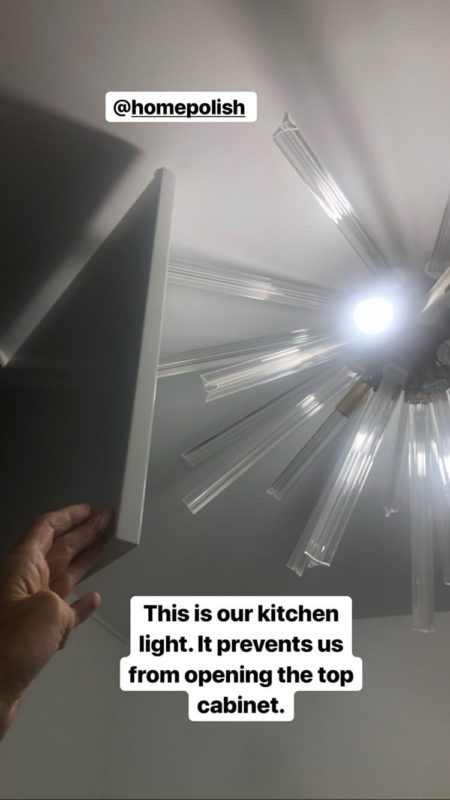 Ilana Wiles发布博文称,装修后厨房里的一盏灯挡住了顶层的橱柜