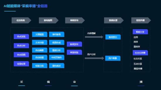 《白皮书》指出,当时,内容科技作为新式出产力,引发了内容工业出产、分发与消费全链条的改造和重塑。自2016年起,新浪新闻便率先发力智能化布局,依托新浪20余年沉积的内容数据和新浪微博10年来敞开的社会化媒体数据,经过“AI+大数据”完结了“采编审播”全流程的智能化运用。