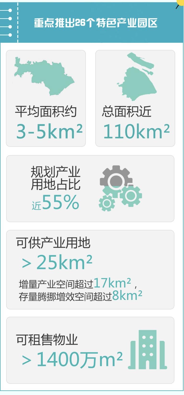 长兴岛海洋配备基地、临港重配备工业区、上海化工区、崇明工业园区、康桥工业区、张江科学城 、松江经济技术开发区、闵行区航天科技工业园 、临港浦江园区、青浦工业园区、嘉定工业区等园区增量空间超越1000亩。