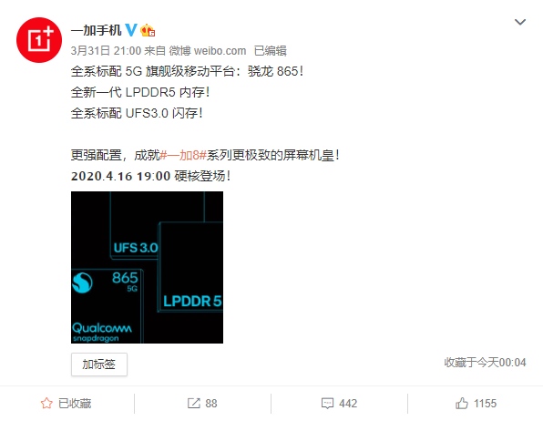 依据一加手机官微最新发布的音讯显现,与此前曝光的音讯根本共同,全新的一加8系列旗舰将全系标配5G旗舰级移动渠道骁龙865,搭载全新一代LPDDR5内存,并全系标配UFS3.0闪存,这样的装备已是当时的尖端水准。而最终官方也表明,更强装备,成果#一加8#系列更极致的屏幕机皇!可见对该系列新机的信心十足。