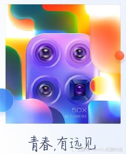 直接看图,官方现已放出了定妆照,多彩配色和后置四摄十分有目共睹。之前有音讯说四摄放在了背部中心,现在看来,仍是在左上角,所以看起来总感觉怪怪的。