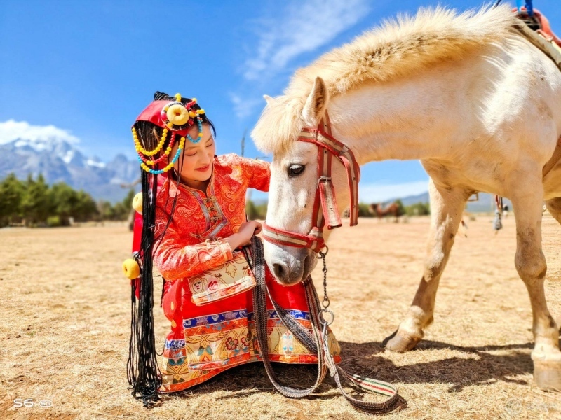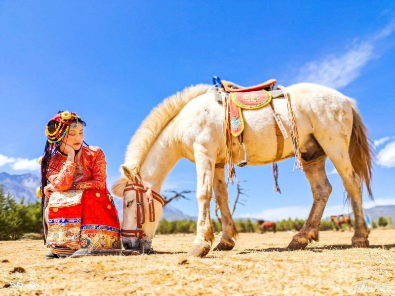 “骑白马的不一定是唐僧,也有可能是,土生土长的藏族姑娘。” 这里的白马不仅是用来摆拍,而是真的可以在马背上驰骋,一睹这山脚下的平坦与壮阔。