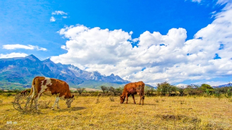 这里的牛有的壮硕可爱,有的又瘦骨嶙峋,不过都一点不怕人,而且还很会【摆拍】,要么做一个“安静的美男子”一心只有草,要么抢镜还会看镜头????哈哈,有被萌到。 这次出行带的vivo S6又一次让我惊喜到,不仅把近处的牛大哥拍的牛毛都能数得清,广角还把远处的雪山及细节、头顶的蓝天白云都拍下来,真实还原了眼前的辽阔风景。