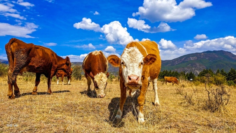 随地坐在草地上,干枯的草根绵软舒适,温暖的阳光打在身上,头顶是蓝天白云,眼前是牛羊成群,远处是雪山树林,深吸一口气,还夹杂着雪山的清冷和草甸的清新,回归大自然,仿佛身心都被净化。