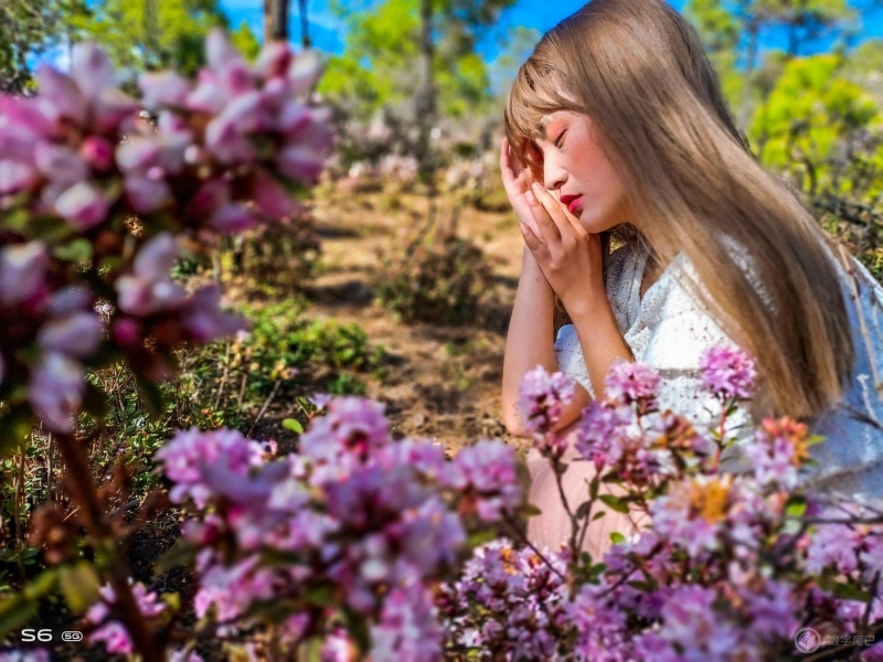 花海一直是美女拍照的必打卡之地。不过由于杜鹃花树比较矮,所以蹲下来拍也不失为一个好主意。四月的丽江温度温度达十几度,穿上裙子和白色衬衫,往花海里随便一蹲,就是森系美女一枚。