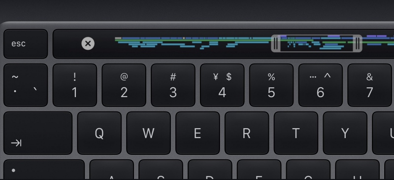 新键盘选用 1 毫米键程剪刀式结构,有独立的 Esc 键和独立的触控 ID 键,方向键呈倒 T 形摆放。