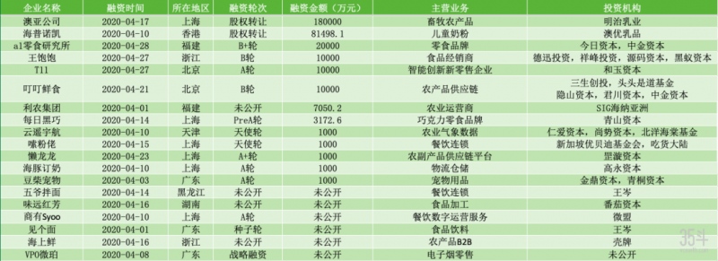 2020年4月的国内农业食物投融资职业散布较为涣散,但疫情当下,大数据服务与新零售经过检测,在4月各融资3起,成为长时刻资金商场最抢手的融资方向。其间T11作为新零售代表,本次A轮融资高达1亿人民币。可见,相关于传统零售形式,顺应时代开展不断更新工业架构,调整链接办法的新零售渠道,或将在未来,成为本钱流量的又一风口。