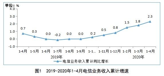 5月20日,工信部发布2020年1-4月通讯业经济运转状况。1-4月,电信事务收入累计完结4562亿元,同比增加2.3%,增速同比进步1.6个百分点,较1-3月增幅进步0.5个百分点。依照上年不变价核算的电信事务总量为4608亿元,同比增加19%,增速较1-3月进步1.3个百分点。