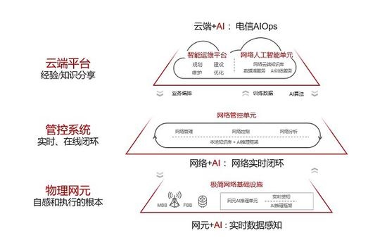 一起,白皮书主张以L4级(高度无人驾驶网络)作为未来架构的阶段性方针,应该具有以下四个特征:一、网络常识和专家常识数字化,从被迫的人工运维走向猜测性的智能运维;二、极简架构的网络基础设施,网元走向智能化;三、分层的单域自治和跨域协同,网络走向在线实时闭环;四、一致的云端AI练习、常识办理和运维规划渠道,支撑电信网络迭代演进。