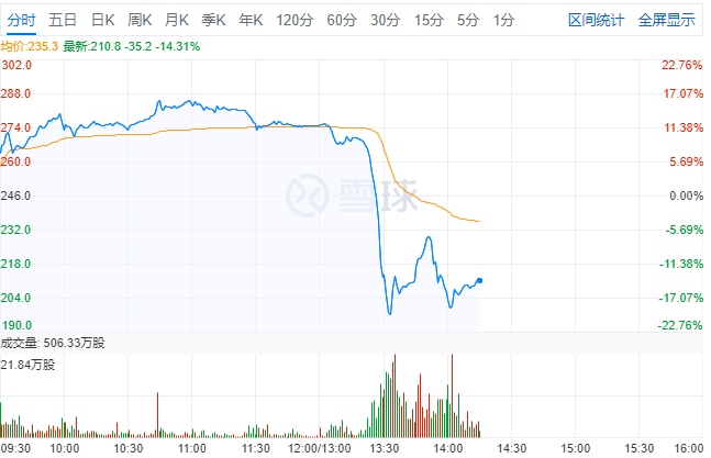 康希诺生物-B(06185.HK)午后突现“高台跳水”。