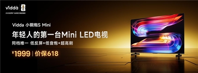 作为主打年轻群体的时尚科技品牌,Vidda始终以极致质价比推动高端显示技术下沉。此次推出的Vidda 小钢炮S Mini,将旗舰级配置下探至两千元级价位,成为同价位段唯一集齐无倒影低反屏、Mini LED精准控光、独立低音炮、180Hz超高刷的产品,彻底打破“好画质=高价格”的行业定式,让年轻人不用为品牌溢价买单,就能拥有一台不妥协的影音终端。